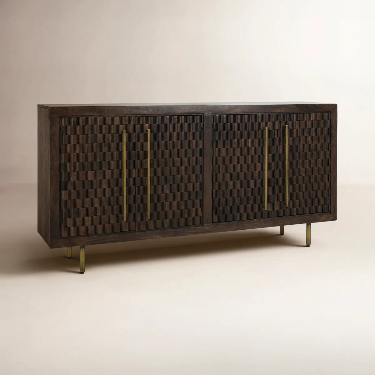 A sideboard like this is just the right blend of Art Deco and mid-century modern. It's crafted from solid mango wood with a wood finish, and the tabletop is spacious enough for a coffee maker and appetizers (or desserts). The cabinets each have a set of double doors with a carved pattern for a distinct dimensional look. Metal hardware provides easy access to interior storage and wire-management cables in the back.