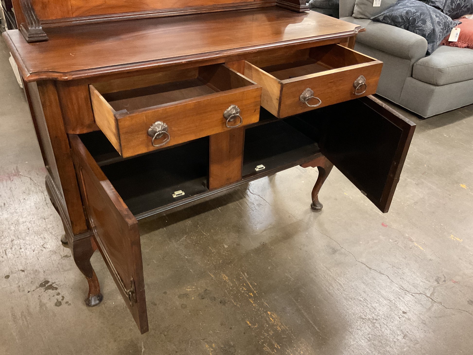 Expertly crafted out of high-quality wood, this small vintage buffet comes complete with an elegant oval mirror, adding a touch of sophistication to any room. With the option to add 4 rollers, it offers both style and functionality. Perfect for displaying your collectibles or storing your essentials. Used-Good Condition