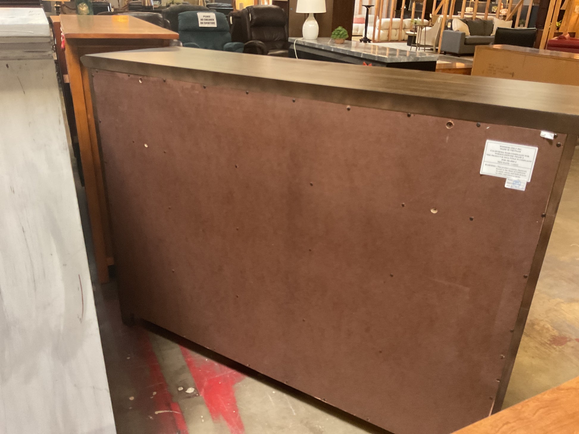 Expertly designed with full extension ball bearing self-closing drawer glides, the Longworth Solid Wood Dresser offers smooth and effortless opening and closing capabilities. The purposeful distressing technique, featuring wood scoring and rub through, adds a unique and charming vintage appeal to this timeless piece of furniture. New condition 43”H x 60”W x18”D