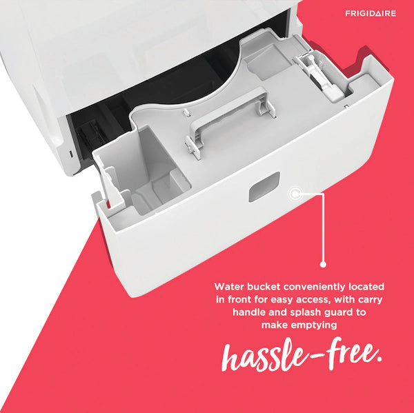 This Frigidaire dehumidifier has a 60 pint capacity and offers a continual drain option, as well as an easy access water bucket. Keep your living space comfortable and reduce humidity with ease.