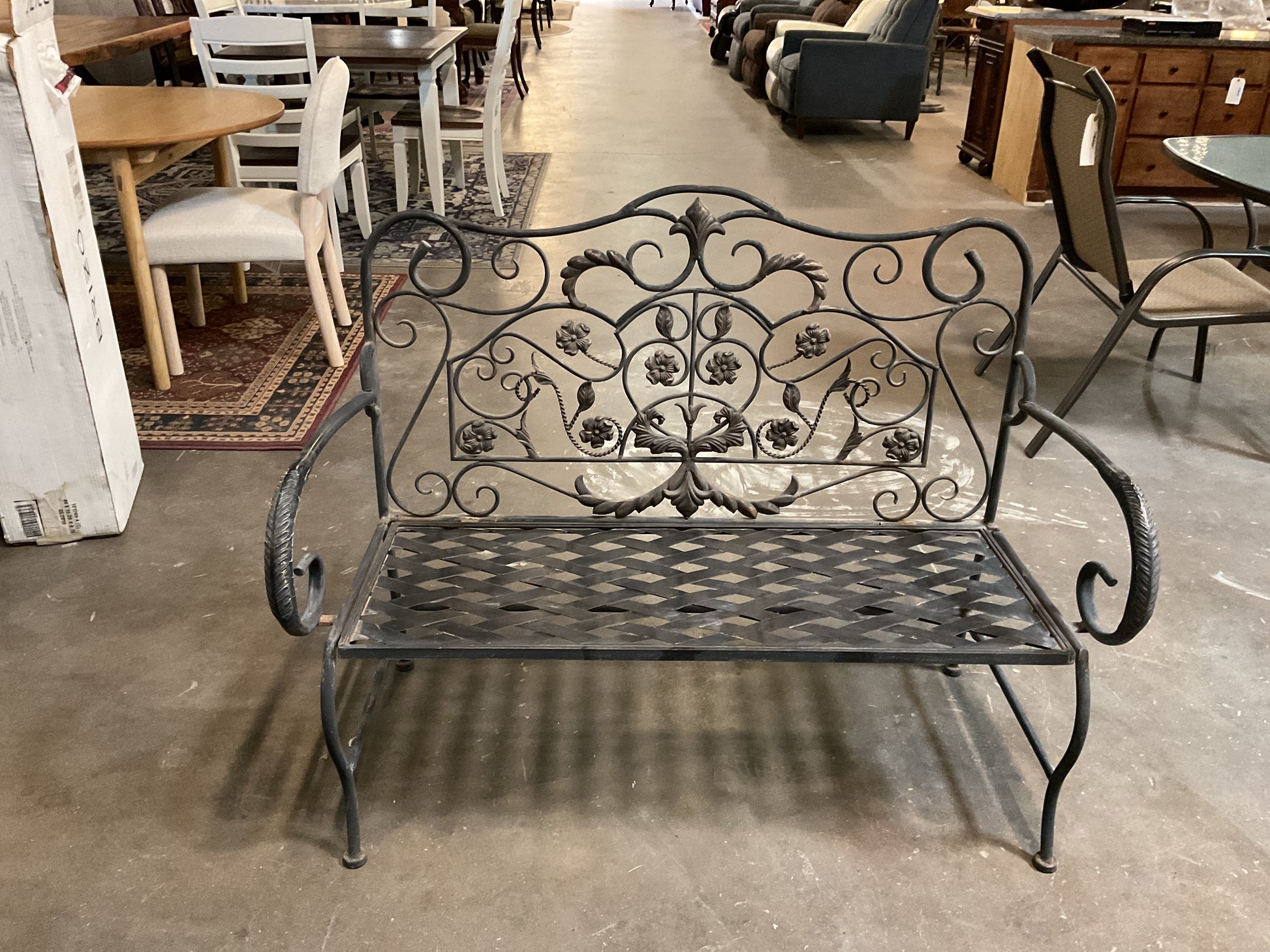 Expertly crafted from solid iron, this collapsible bench combines elegance with convenience. The floral metal detailing adds a touch of charm, while the foldable design allows for easy handling and storage. Perfect for any space, this bench is a versatile and practical choice. Used - Good condition.