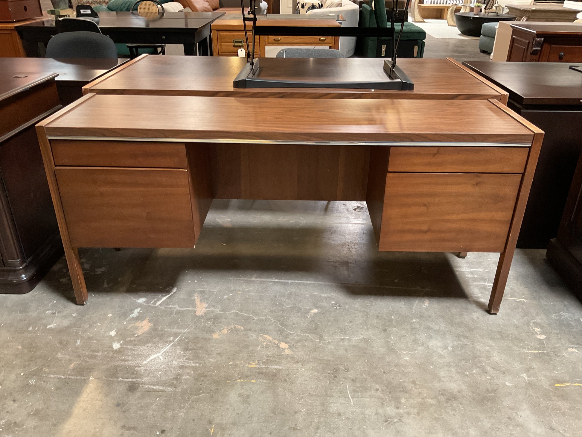 Crafted from high-quality teak wood, the Kimball Teak Desk features a warm brown finish that adds a touch of elegance to any workspace. Its sturdy construction ensures durability, while the natural wood grain offers a timeless appeal. Enhance your productivity and style with this sleek and sophisticated desk. Used-Good Condition