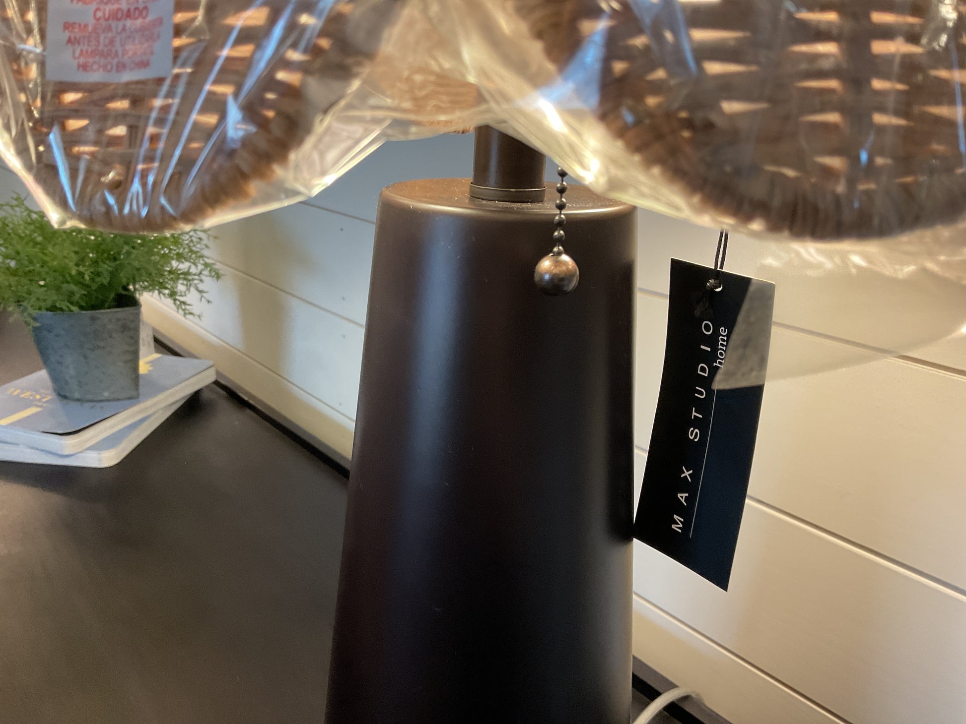 Elevate your space with the Max Studio Lamp featuring a sleek cylinder metal base and a stylish rattan shade. Enjoy double the brightness with two bulbs controlled by convenient pull chains. Create a warm and inviting atmosphere in any room with this unique and functional piece. New - Excellent condition