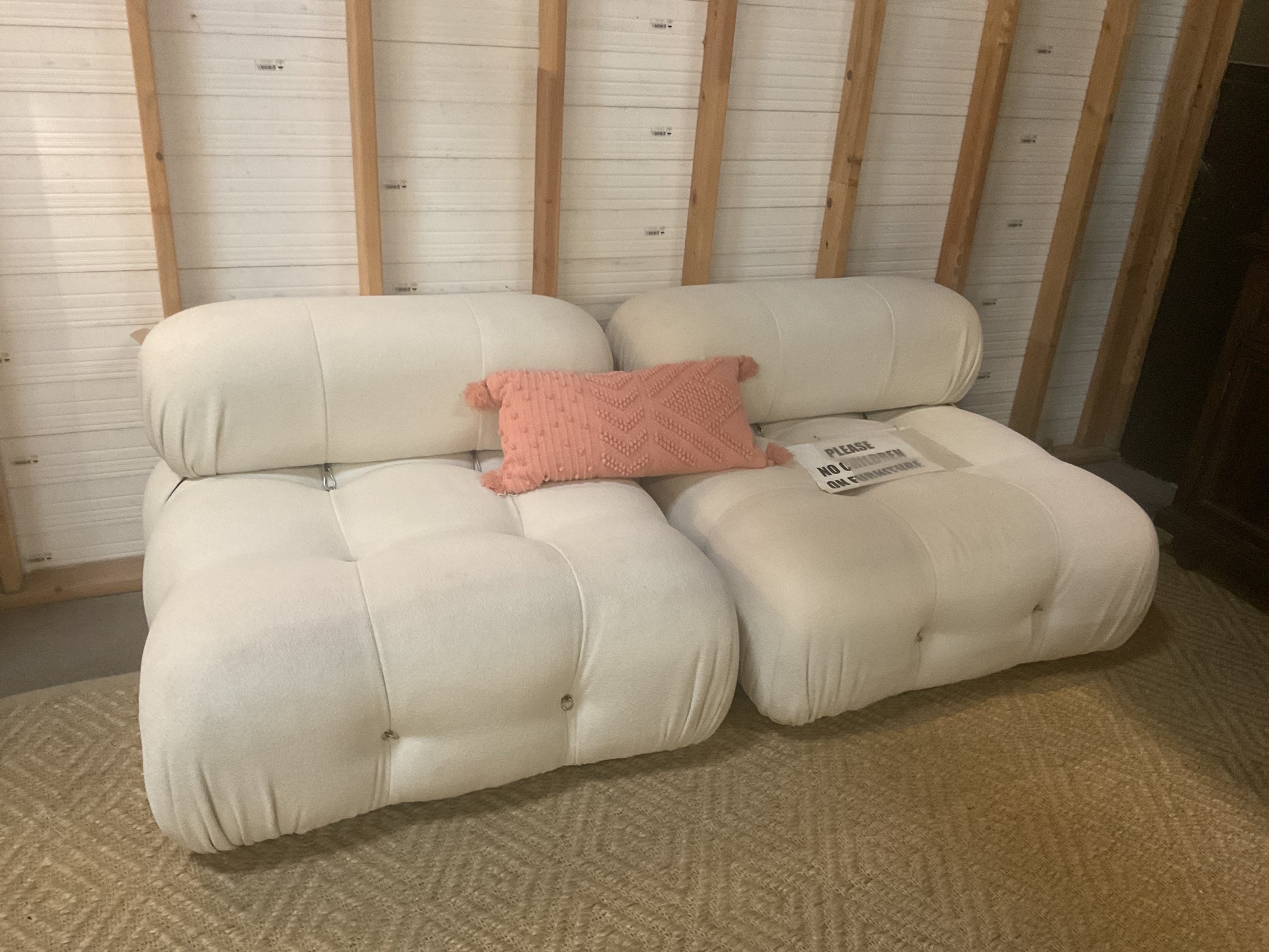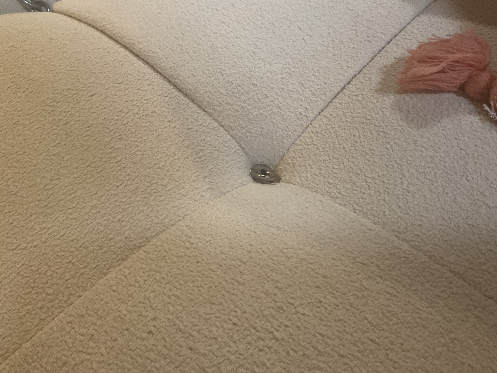 Replicating the iconic lounge piece, the Mimosa Upholstered Chair boasts a playful shape and modern functionality. Convenient pull cords and metal rings make for effortless adjustments, while the classic design adds a touch of style to any space. Set includes two chairs. 37.75”W x 26.7”H x 37.75”D