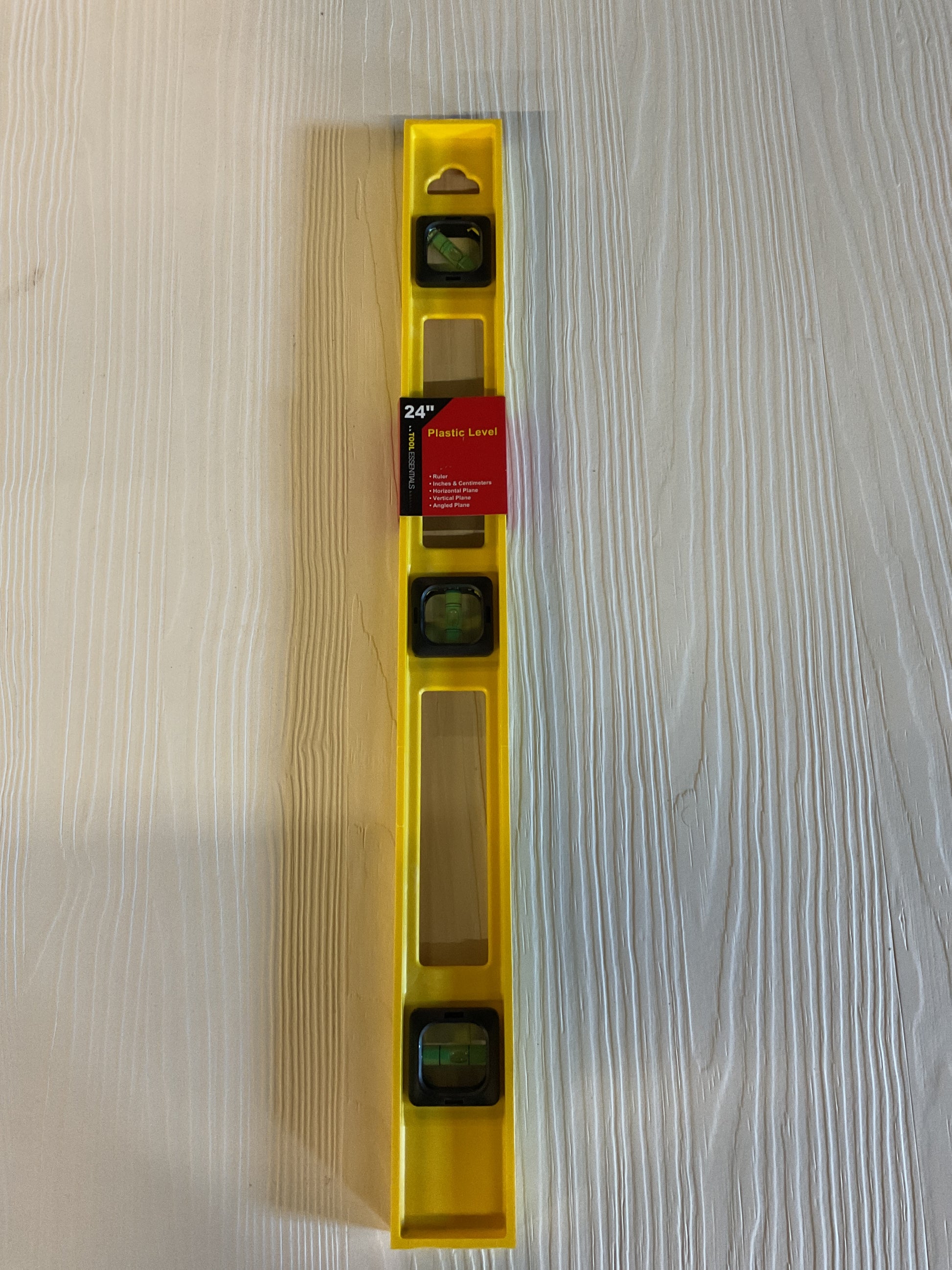 Our Plastic Level features a 24" ruler for accurate and precise measurements. Made of durable plastic material, this level is lightweight and easy to use. Perfect for various DIY projects and carpentry tasks.