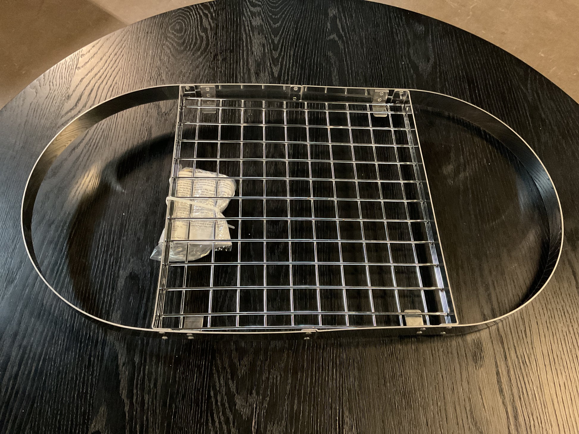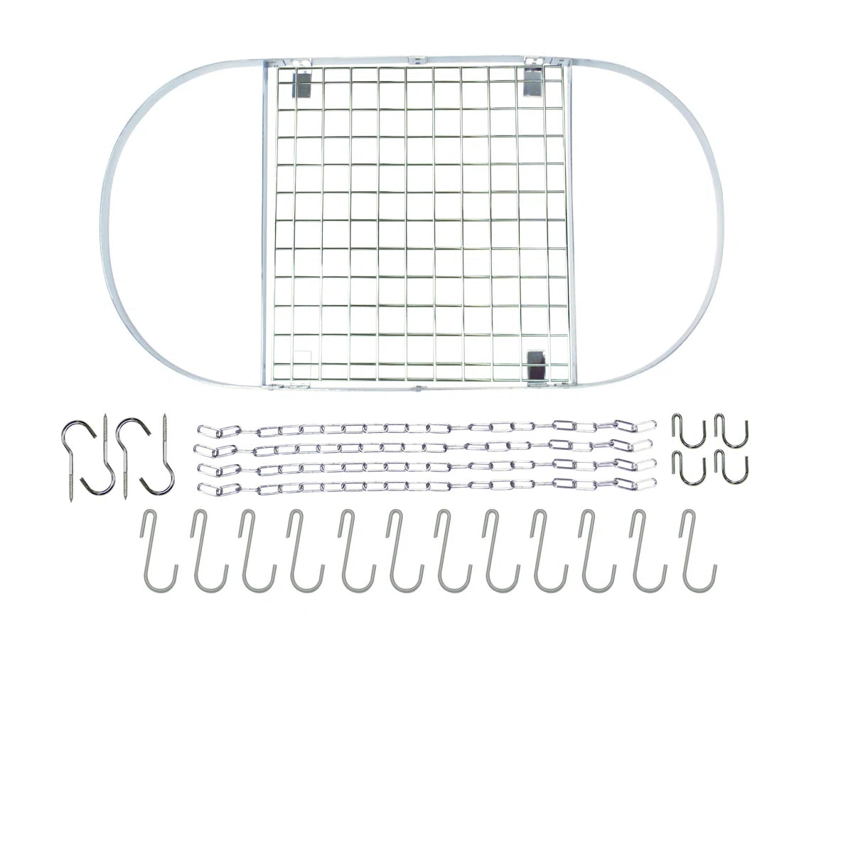 This Range Kleen Enamel Oval Pot Rack can hold up to 40lbs and includes pot hooks. Its upper shelf provides additional storage, making it a practical and convenient choice for organizing your kitchen. Keep your pots and pans within reach while maximizing storage space. New
