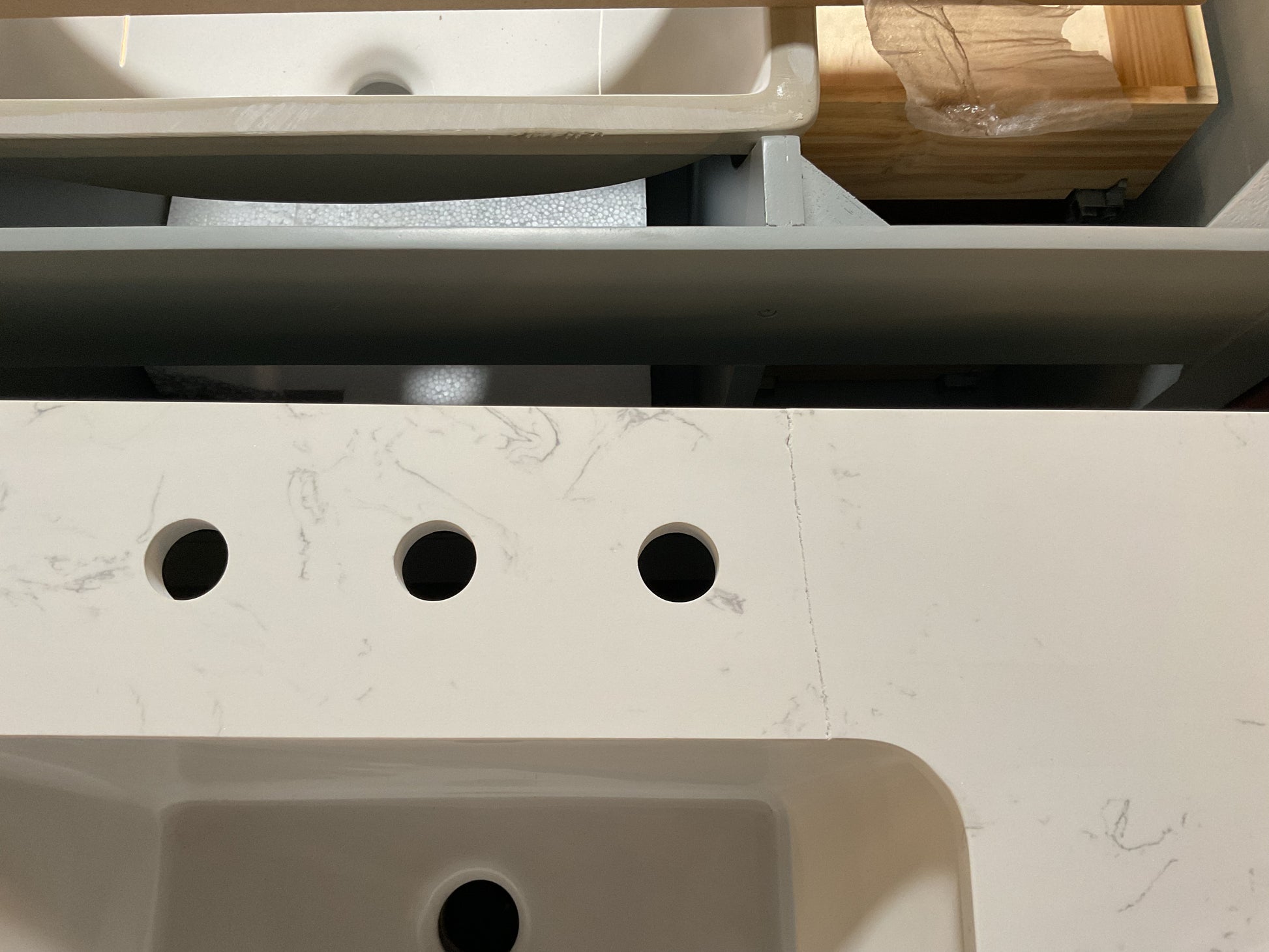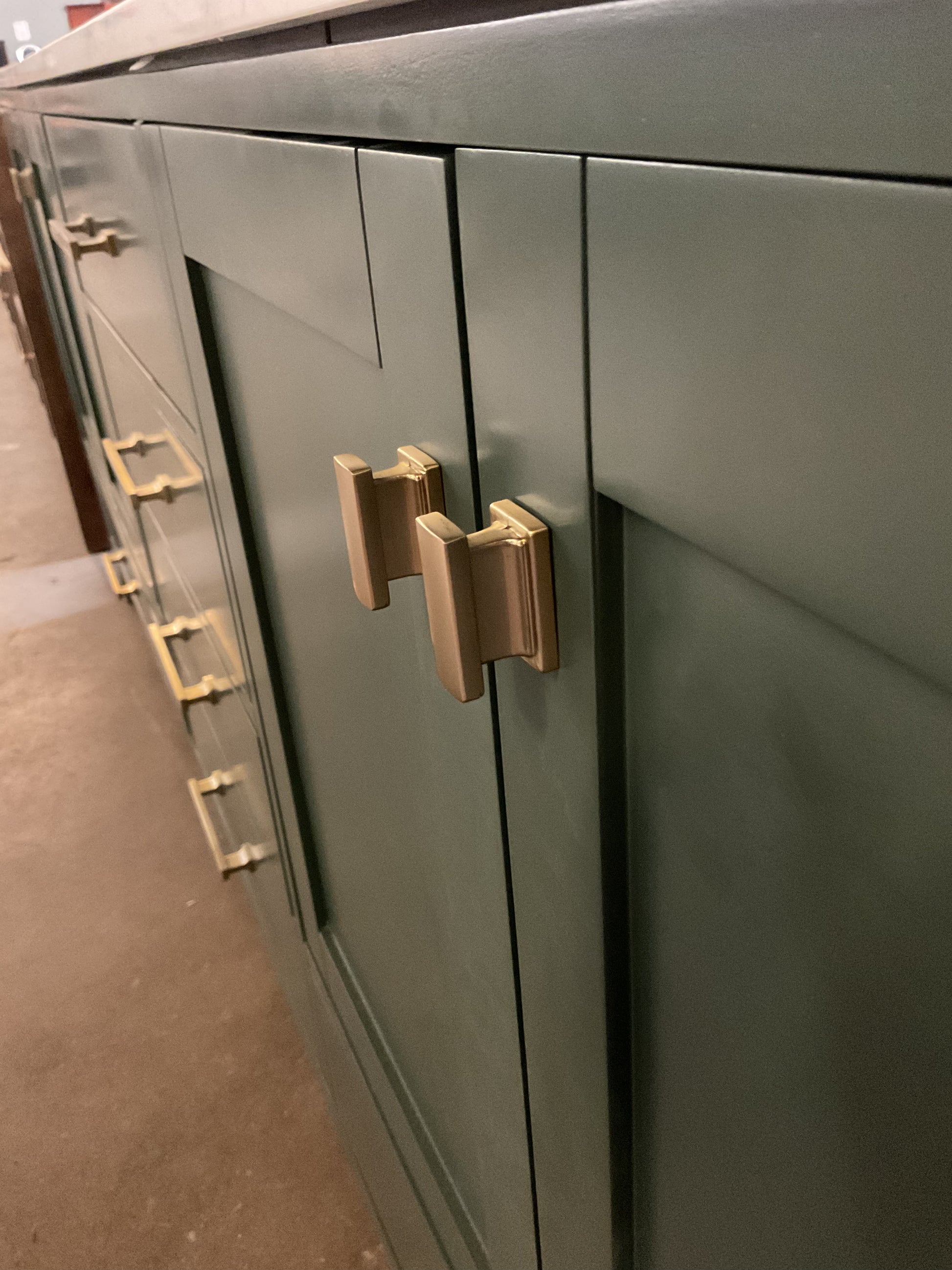 Expertly crafted with an engineered stone top and backsplash, the Render 84" Double Bathroom Vanity offers a sleek and modern aesthetic. The soft close design ensures a quiet and smooth operation, while providing ample storage space. Perfect for any bathroom upgrade. New-Scratch & Dent