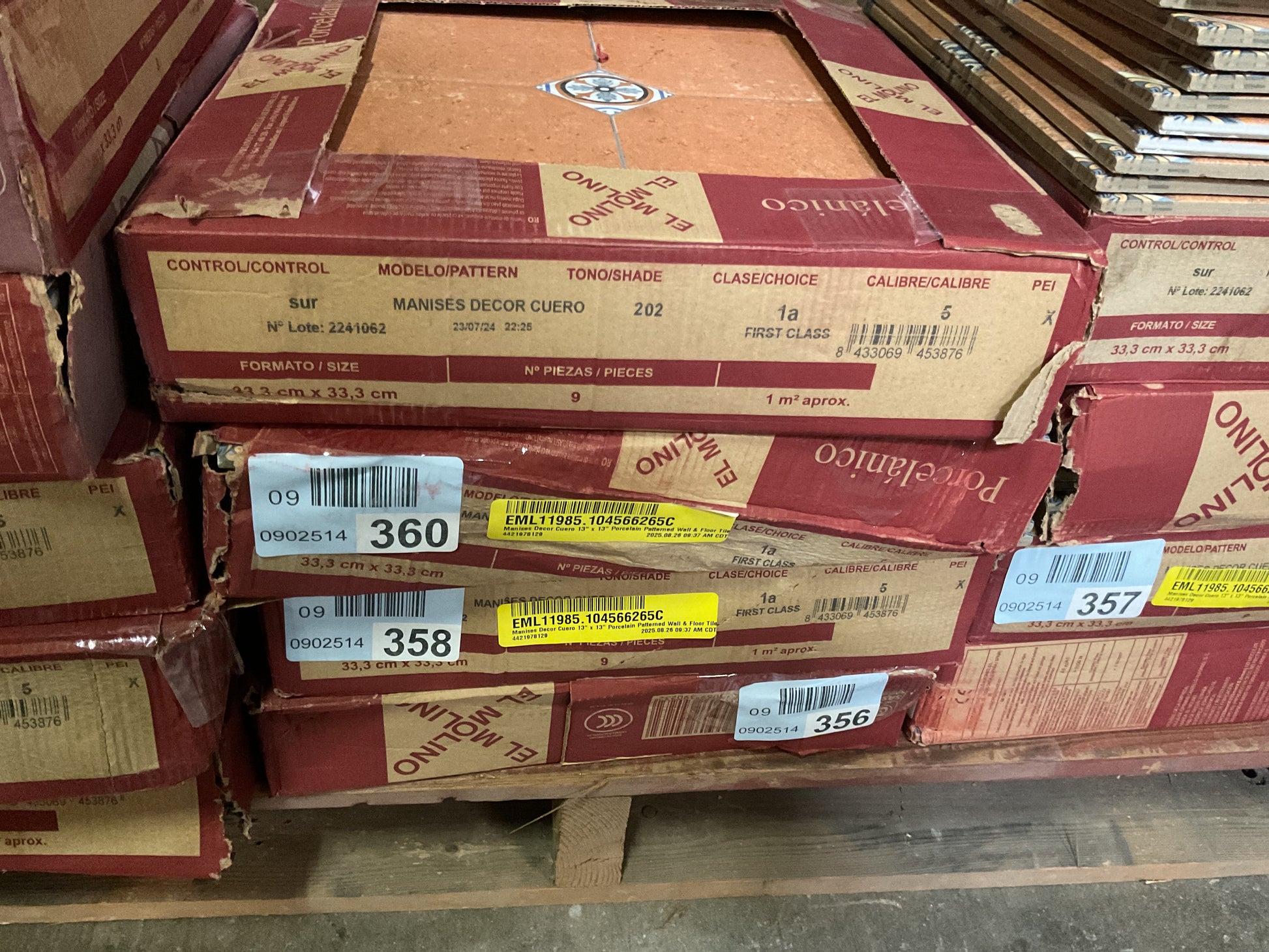Upgrade your flooring with Manises Decor Cuero Porcelain Tiles. This set includes 14 boxes for a total of 153.72 sqft, with 9 tiles per box. These tiles are not only stylish, but also ADA approved for slip resistance. Elevate your space with these expertly crafted tiles. New