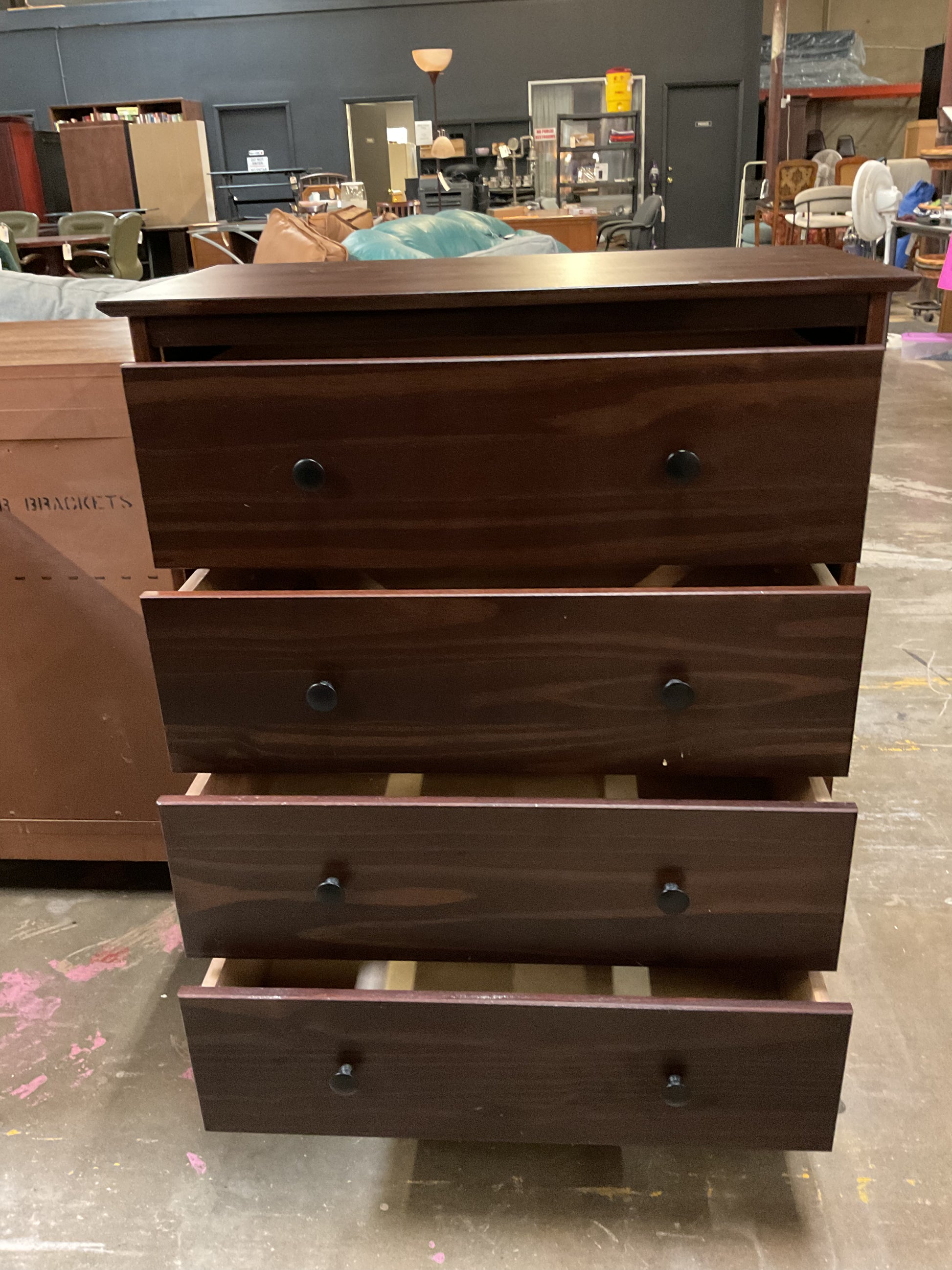 Crafted from solid wood with smooth wood runners, the Walker Edison Solid 4 Drawer Chest is a modern and boho addition to any home. Enjoy the durability and sleek design of this chest while keeping your belongings organized in its four spacious drawers. Used-Good Condition